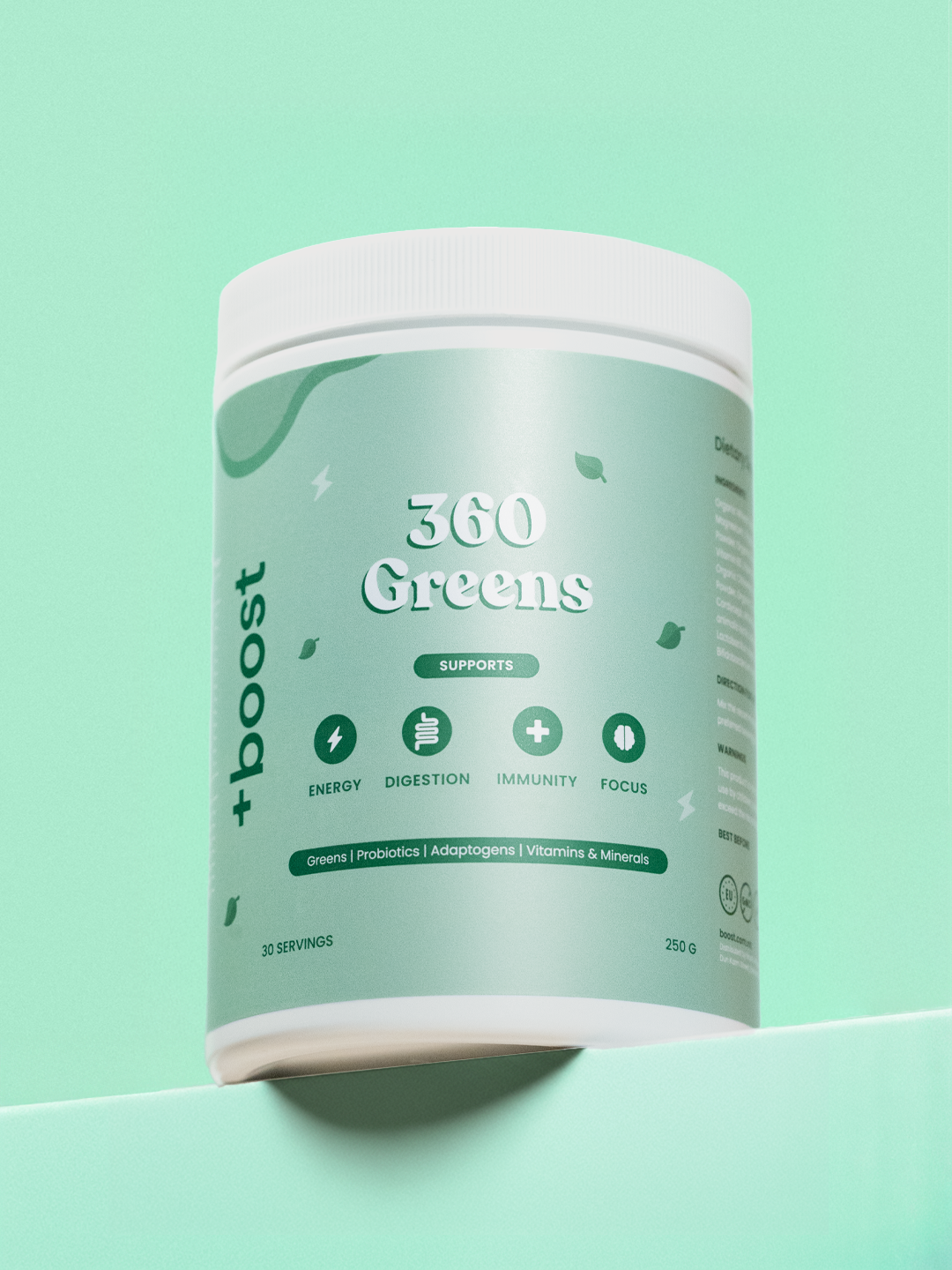 At +boost, 360 Greens is more than a supplement—it’s a thoughtfully engineered wellness solution. Drawing from high-quality supergreens, adaptogenic mushrooms, probiotics, enzymes, and a full multivitamin blend, it’s crafted to support immunity, digestion, cognition, energy, and daily vitality.