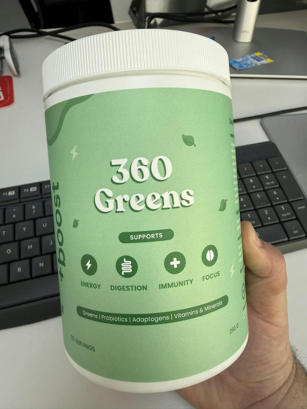 +boost 360 Greens is a nutrient-dense super greens formula designed to support overall health and daily vitality. Modern diets often fall short in providing enough vegetables, micronutrients, and beneficial plant compounds. This formula combines a wide range of superfoods, including greens like spirulina, chlorella, moringa, and wheatgrass, together with adaptogenic mushrooms, probiotics, digestive enzymes, and essential vitamins and minerals.