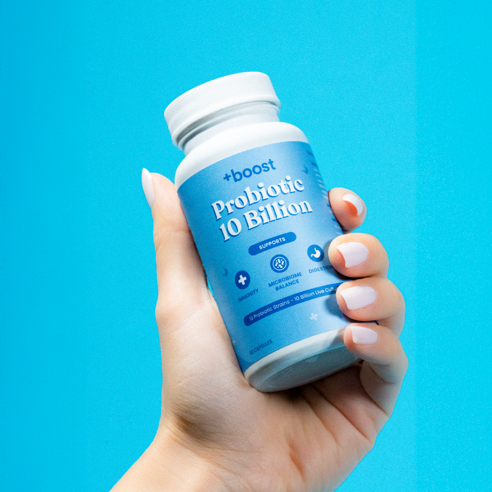 Boost your gut health with +boost Probiotic 10 billion, your daily dose of digestive balance and vitality.