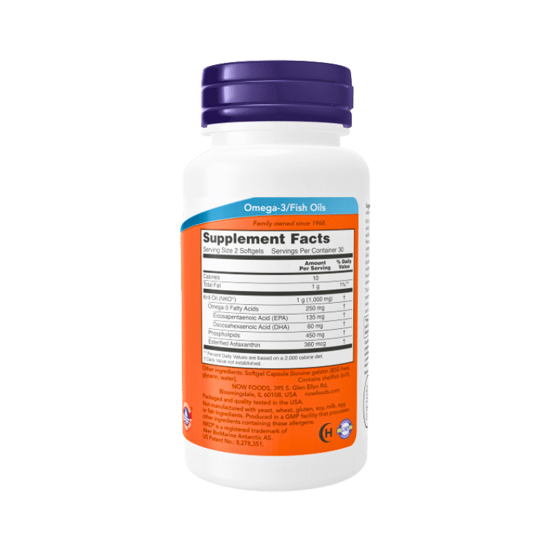 NOW® Krill Oil features Pure NKO®—a premium, phospholipid-bound source of omega-3 fatty acids, including EPA and DHA. Unique to krill oil, it also naturally contains astaxanthin, a potent free radical scavenger and immune-supporting carotenoid. Clinical studies demonstrate that NKO® krill oil supports joint comfort, helps maintain healthy blood lipid levels already within the normal range, and may contribute to maintaining healthy feminine balance. The phospholipid-bound EPA and DHA in krill oil offer exceptionally high bioavailability for efficient absorption.