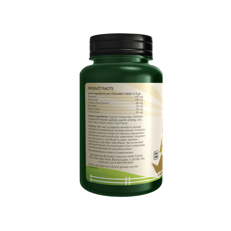 Formulated and recommended by renowned veterinarian Dr. Barbara Royal, DVM, CVA, founder of The Royal Treatment Veterinary Center, NOW® Pets Pet Allergy contains natural botanicals designed to help maintain normal histamine levels and support your pet’s overall allergy health.
