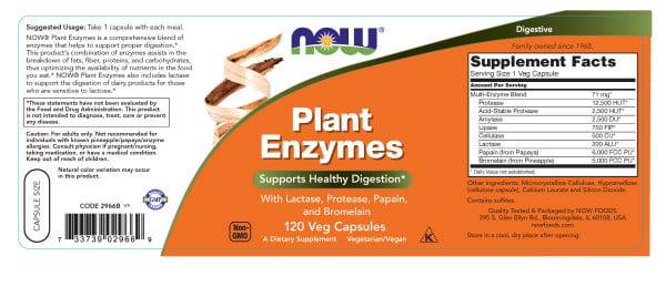 NOW© Plant Enzymes is a comprehensive blend of enzymes that helps to support proper digestion.