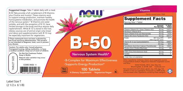B-50 Tabs provide a full complement of B-vitamins plus choline and inositol.